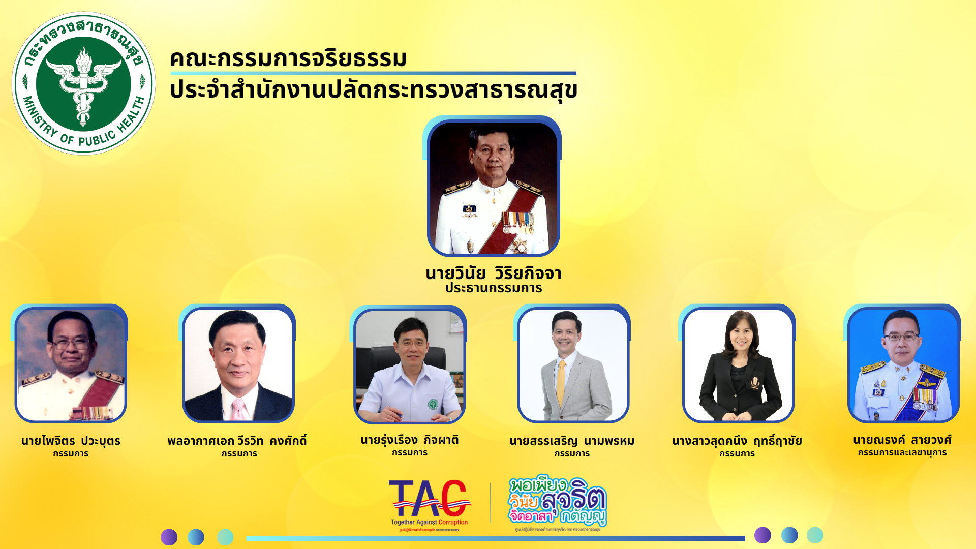 6. อินโฟกราฟฟิกคณะกรรมการจริยธรรม ประจำสำนักงานปลัดกระทรวงสาธารณสุข ชุดปัจจุบัน ที่มีนายวินัย วิริยกิจจา เป็นประธานกรรมการ